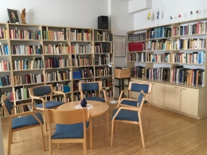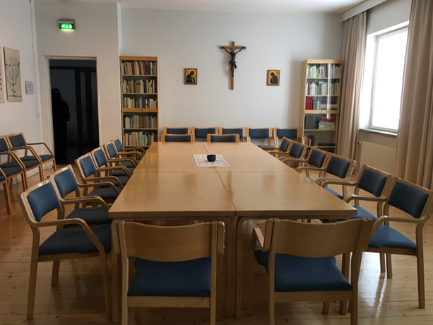 Kokoustiloina käytettävissä kirjasto (1. kerros) ja Birgitta-sali.
